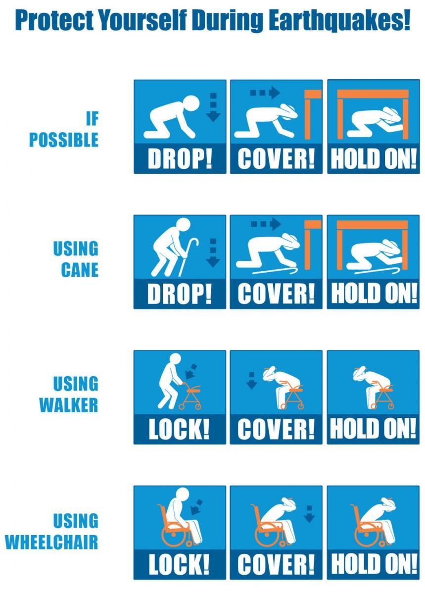 DROP down onto your hands and knees so the earthquake doesn’t knock you down.